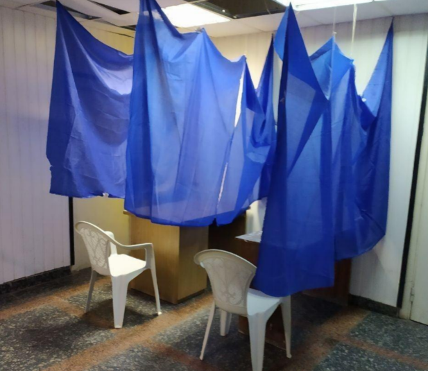 Також зазначається, що на дільниці №181448, яка знаходиться в спортивній залі садочку № 46 кабінки відсутні взагалі. Саме приміщення для голосування дуже маленьке.
