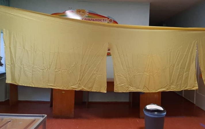 Як інформує громадська мережа «Опора», на виборчій дільниці № 181447, яка знаходиться в музичній залі в дошкільному навчальному закладі №66, одна кабінка відгороджена у вигляді ширми з лялькового театру.