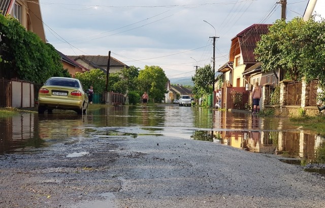 Злива перетворила на річку вулицю одного з райцентрів Закарпаття (фото, відео)