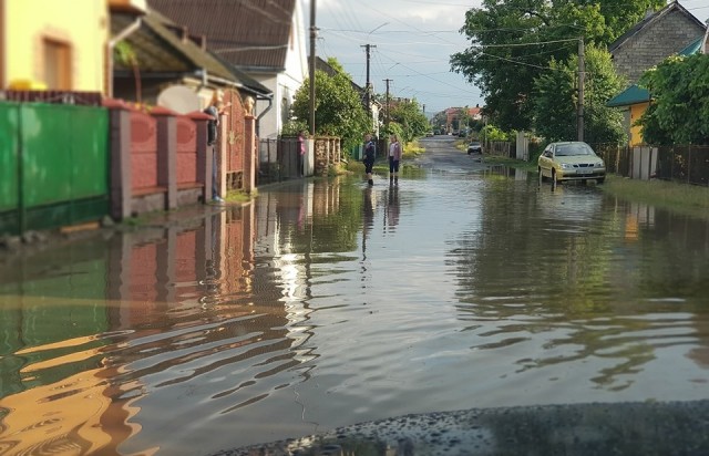 Сильний дощ залив вулицю у селищі міського типу Великий Березний на Закарпатті. Про це повідомляє Мукачево.net.
