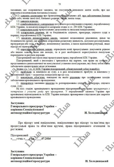 Документ, який представлений нижче, отриманий LB.ua із джерел у Генеральній прокуратурі і був переданий САП для подальших процесуальних дій. Разом з тим, як стало відомо, антикорупційна прокуратура вносила згодом до повідомлення про підозру додаткові правки. Які саме, наразі невідомо.