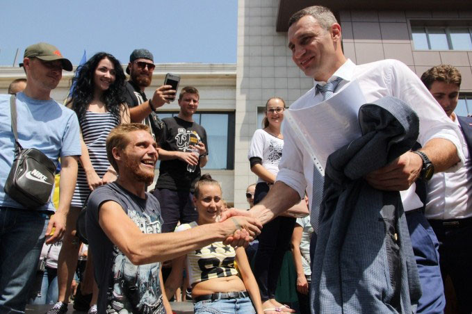 Учасники акції зустріли мера Києва Віталія Кличка оплесками і постаралися висловити йому свої претензії до одеського мера, так як сам Геннадій Труханов не приділив мітингувальникам уваги і зник з форуму через чорний хід.