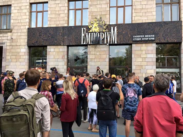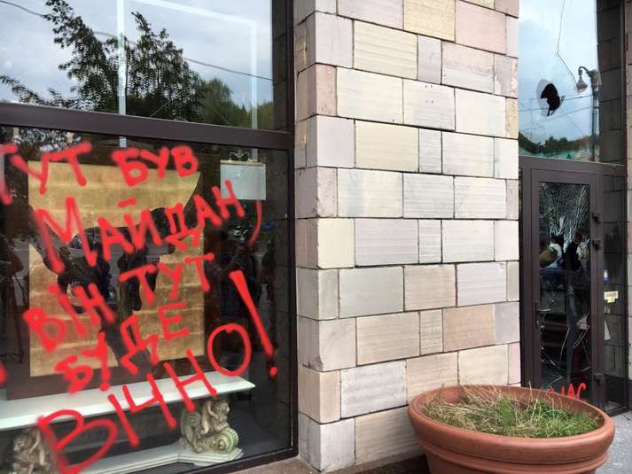 Зокрема, близько 15 години активісти підпалили шини під вхідними дверима магазину елітних меблів, зі стін якого були стерті графіті. Також було розбито скло у вхідних дверях. Крім того, на вікна та двері магазину фарбами були нанесені різні написи: «Не зітреш нас», «Тут був Майдан. Він тут буде вічно», «Повага до історії».