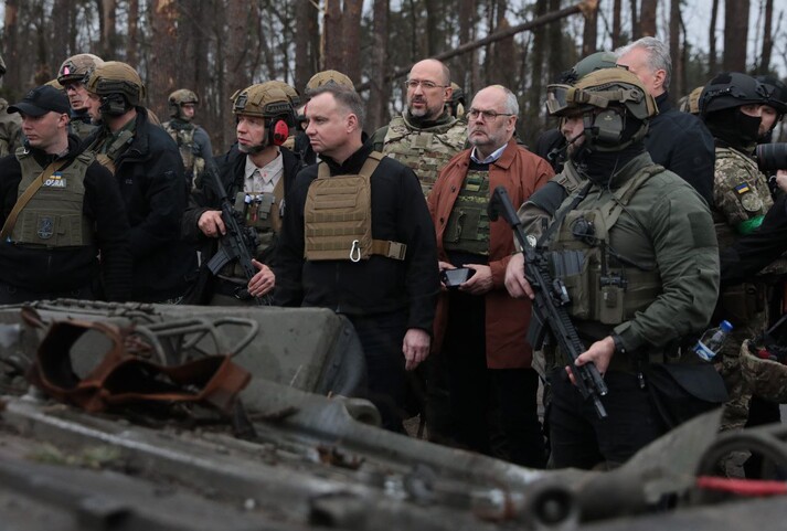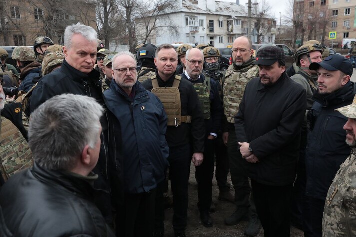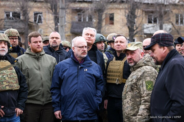 Президенти Польщі, Литви, Латвії та Естонії Анджей Дуда, Гітанас Науседа, Егітс Левітс та Алар Каріс в рамках візиту до України відвідали селище Бородянка Київської області, яка була майже вщент зруйнована російськими військами. Про це написавлитовський президент Гітанас Науседа.
