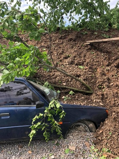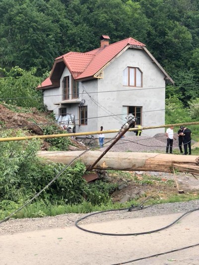 Як повідомили у прес-службі Закарпатської ОДА, величезна земляна маса, що посунула з гори, зруйнувала два житлові будинки з саману й накрила легковик «Таврія».