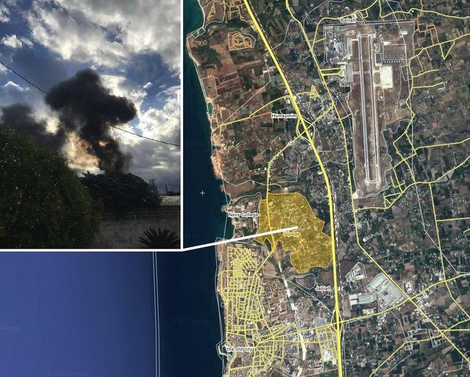 Опубліковано перші фото із сирійської провінції Латакія, де на авіабазі Хмеймім розбився російський фронтовий бомбардувальник Су-24.