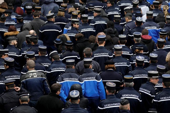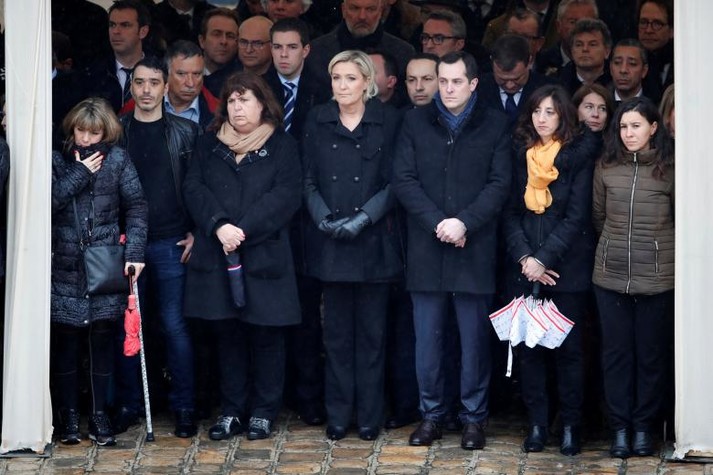 Кілька сотень людей прийшли вшанувати пам'ять загиблого офіцера Бельтрама, який став у Франції національним героєм. Церемонія прощання з жандармом, який врятував життя заручниці на півдні Франції, почалася у внутрішньому дворі Будинку інвалідів в Парижі.