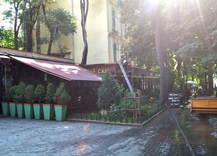 За інформацією пожежників 16 червня о 7:39 в Службу порятунку «101» надійшло повідомлення, що на вул. Гаванна на території міського саду загорілася покрівля прибудови до ресторану «Пивний сад». на площі 150 метрів квадратних.