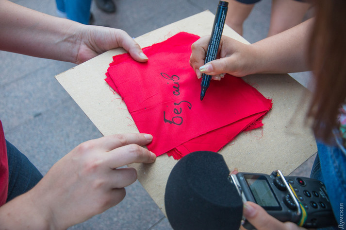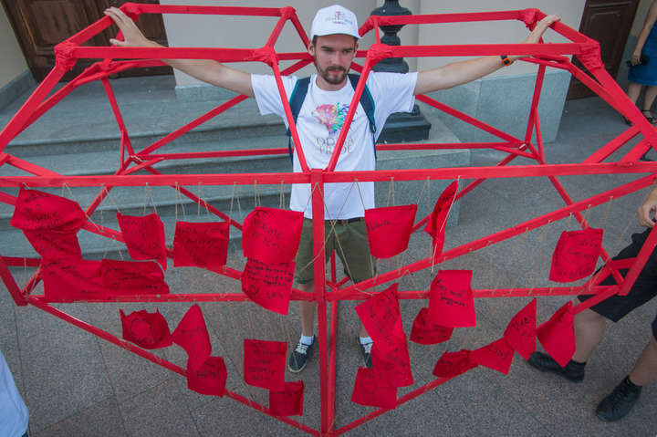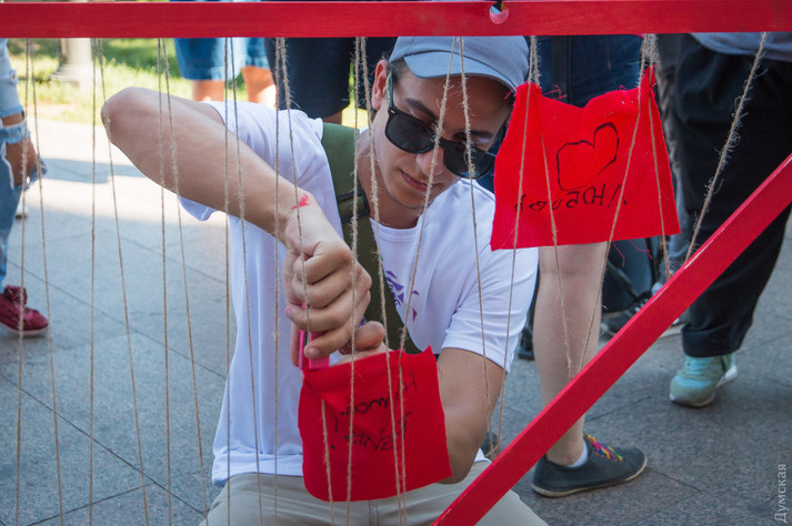 В рамках акції відбувся комунікативний флешмоб - одеситів просили написати свою відповідь на питання, «Що для вас любов?», на клаптиках червоної тканини, які згодом прикріпили до серця, тим самим заповнивши його порожнечу.