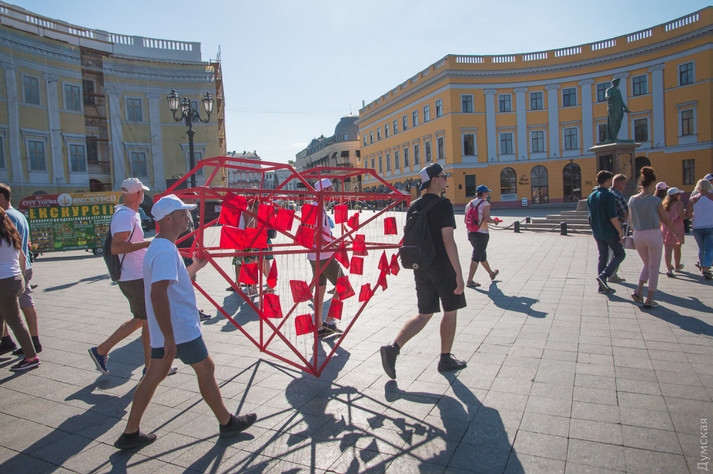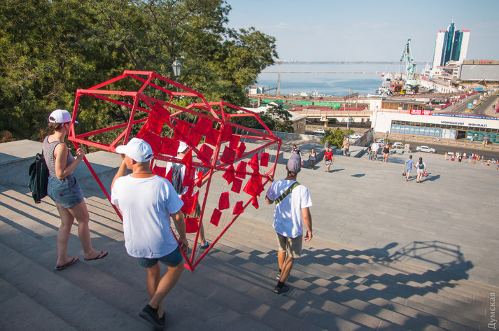 Серце було зроблене з дерев’яних рейок, у середину помістили відповіді одеситів на питання «Що для вас любов?»