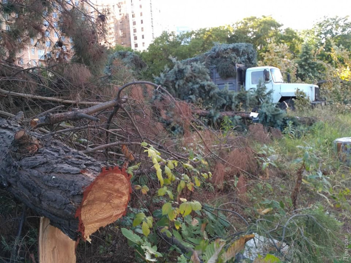 Нагадаємо, 4 серпня близько десяти молодих людей з бензопилами протягом півгодини знищили понад двісті дерев, розташованих в парковій зоні, де раніше був будинок прийомів Одеської міськради, а нині володіння ПП «Дофін». Вирубка дерев викликала великий суспільний резонанс в Одесі.