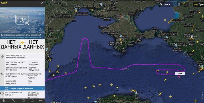 Британський розвідник баражує над чорноморськими водами на висоті 12,5 кілометрів і при швидкості 900 км на годину. Для протидії розвідці в повітря підняті кілька винищувачів протиповітряної оборони країни-агресора.