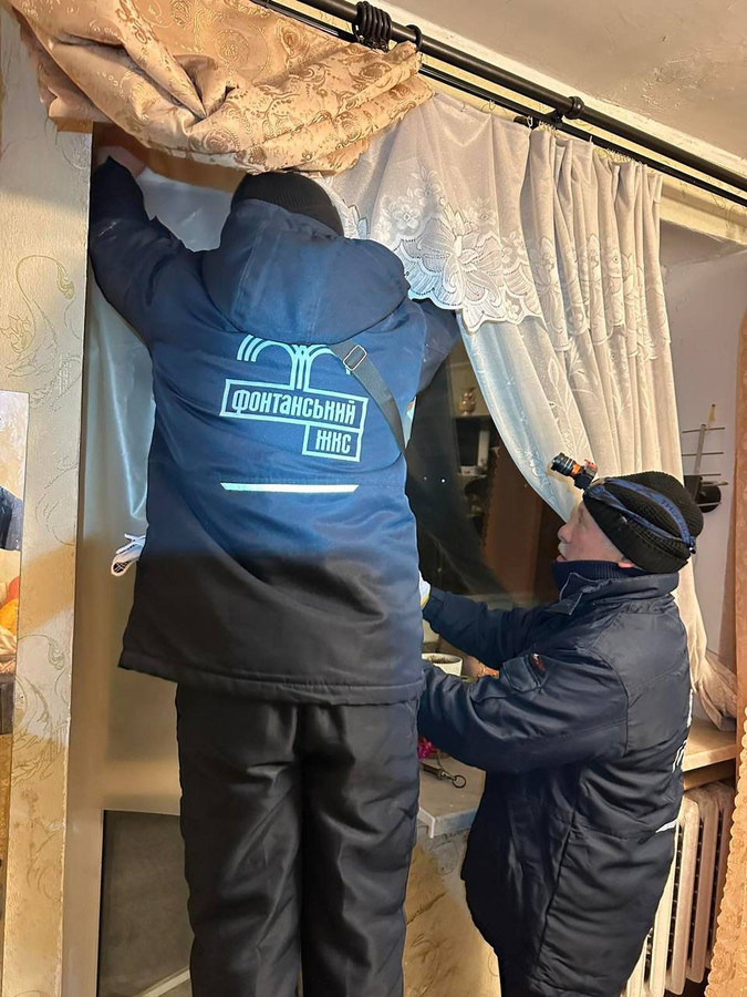 На всіх локаціях з самої ночі працюють комунальні служби. Триває ліквідація наслідків: прибирається територія від уламків, працівники закривають пошкоджені віконні отвори OSB-плитами та плівкою.