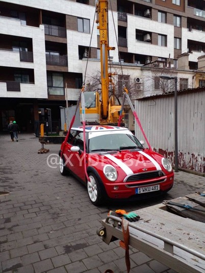 Яскраво розмальований Mini Cooper на бельгійських номерах залишили просто на балконі сьомого поверху.