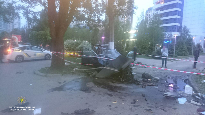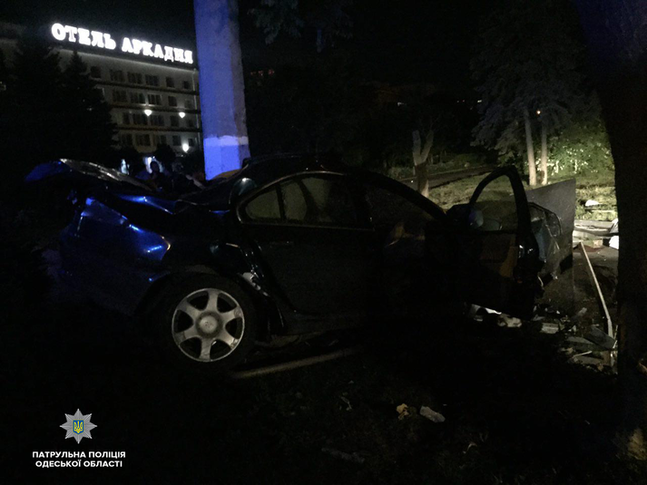 Автомобіль влетів у бетонну опору на Генуезькій вулиці. Стовп вистояв