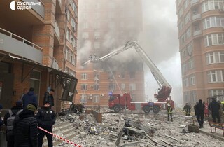 Також багатоповерхівка загорілась і у Києві. Крім того, у столиці палають складські приміщення. Вибухом пошкоджено станцію метро.