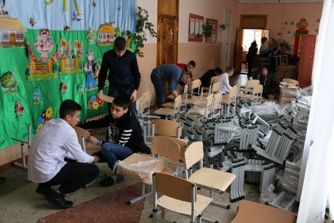 Так, початкові класи отримали 60 нових парт із стільцями, які можуть регулюватися в залежності від зросту дитини. Вже після новорічних канікул діти навчатимуться за новими партами, які відповідають стандартам Нової української школи.