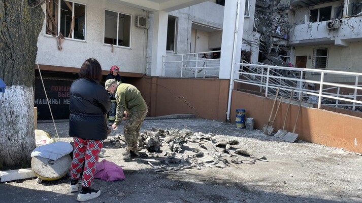 Завали в одеській багатоповерхівці, в яку вдень 23 квітня влучила ракета, продовжують розбирати. Мешканці намагаються потрапити у квартири, аби забрати хоча б документи. Про це повідомляє «Суспільне».