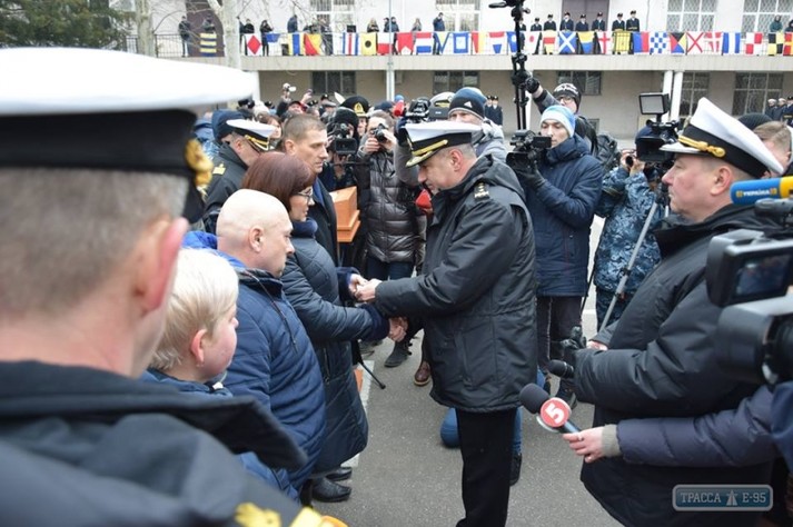 На урочистому заході окремо згадали і двох одеських курсантів - Владислава Костишина та Богдана Головаша, які в даний час знаходяться в російському полоні. Вони також отримали офіцерські погони - заочно, а кортики командування ВМС передало їх рідним і близьким, які були присутні на церемонії.