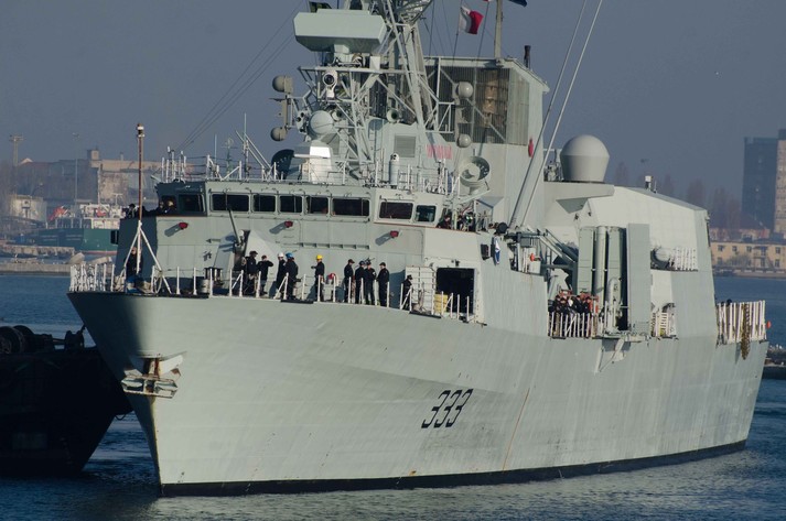 Фрегат Королівських ВМС «Торонто» належить до кораблів класу «Галіфакс» водотоннажністю близько 4000 тонн, що з 1992 року перебувають на озброєнні ВМС Канади. Озброєний протикорабельними ракетами «Гарпун», протичовновими торпедами «Марк-46», протиповітряним зенітно-ракетним комплексом, а також артилерійською носовою 57-мм гарматою. Крам того на борту є десантний вертоліт CH-148 «Циклон».