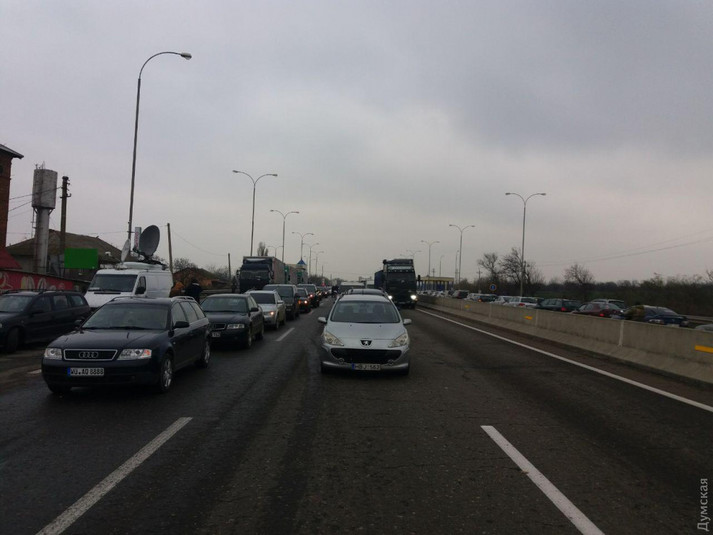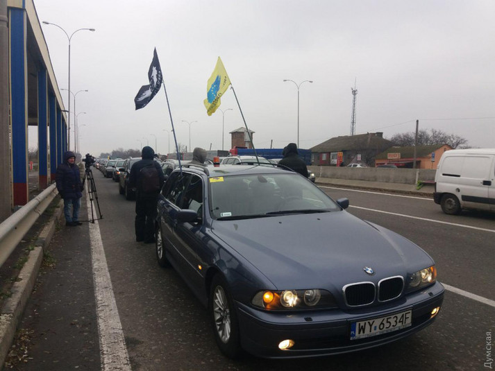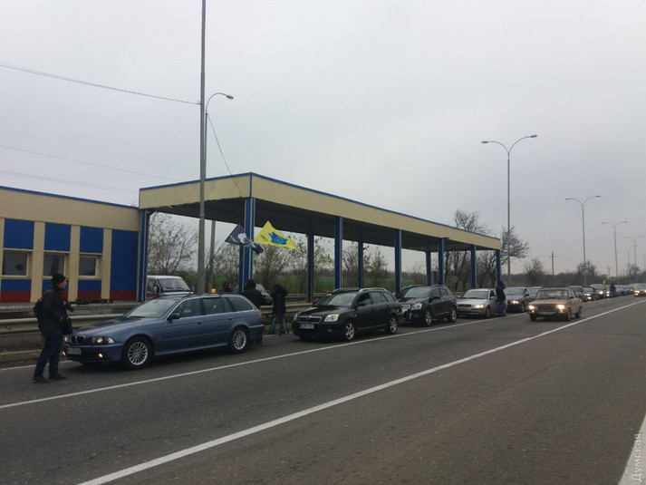 На Одещині 20 листопада близько 200 автомобілів на єврономерах частково перекрили рух по Київській трасі, в районі КПП «Дачне».