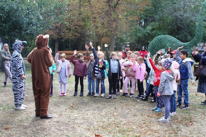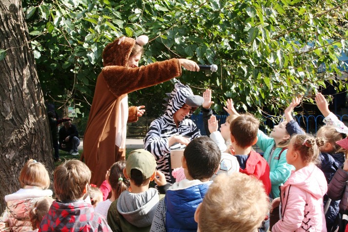 Гостей свята зустрічали веселі ведучі-аніматори в образах мавпи і зебри. Разом з ними діти танцювали, грали і брали участь у веселих конкурсах.
