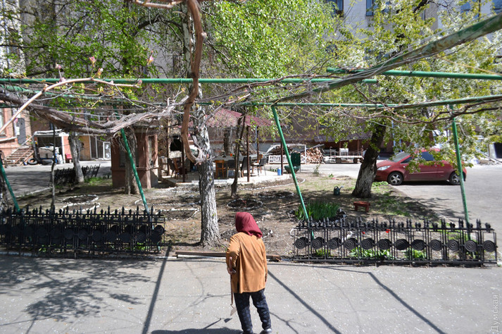 На задньому дворі Будинку профспілок споруджено альтанку з цегляним мангалом. Охорона будівлі була налаштована, м'яко кажучи, не дуже дружелюбно і забороняла знімати «шашличну», погрожуючи фізичною розправою.