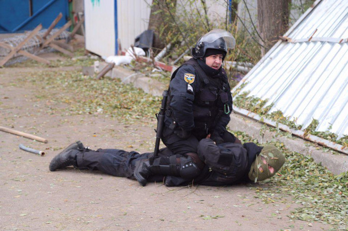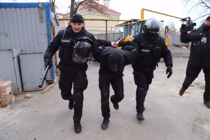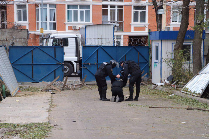 За даними видання, під час сьогоднішньої акції «самооборонівці» після нападу на противників будівництва намагалися сховатися на будівництві в одному з трейлерів. Під час затримання вони чинили опір поліції.