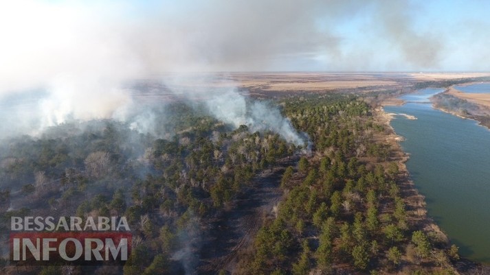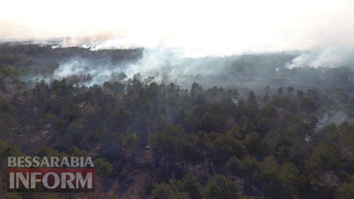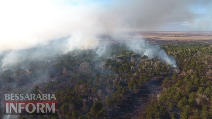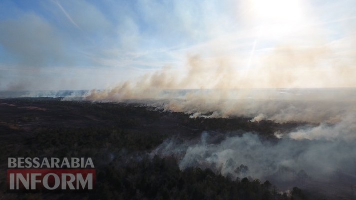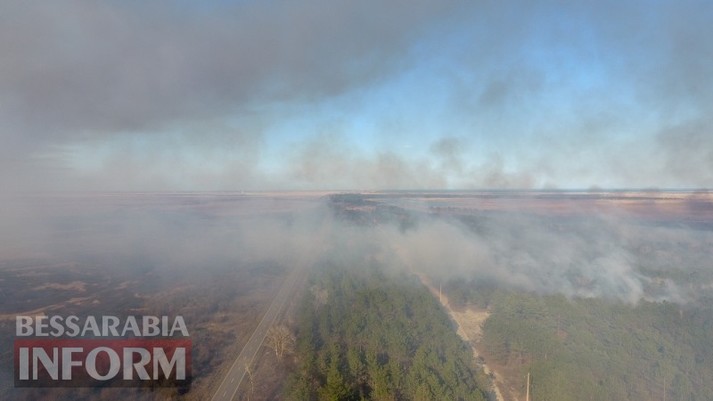 Масштабна пожежа на Одещині: палаюче Вилківське лісництво з висоти пташиного польоту