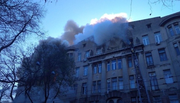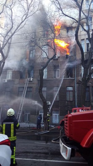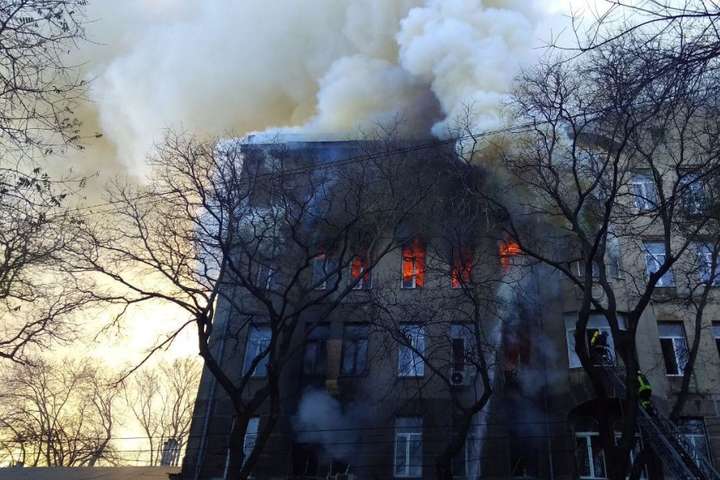 В Одесі горить шестиповерхова будівля навчального корпусу коледжу економіки, права та готельно-ресторанного бізнесу. Дванадцятьох постраждалих від вогню доставлено до лікарень, серед постраждалих чотири пожежники.