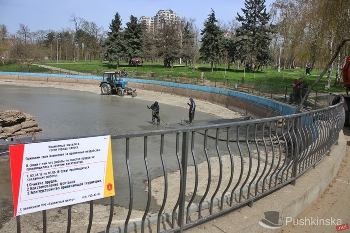 У прес-службі одеської мерії відзначили, що три ставки в парку привели в порядок в 2016-м і 2017-го роках, а найбільше водоймище не чистили вже більше 10 років. Місцями шар мулу, що покрив його дно, досягає 80 см.