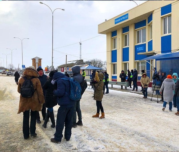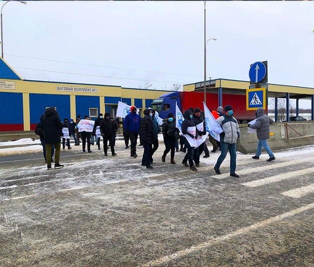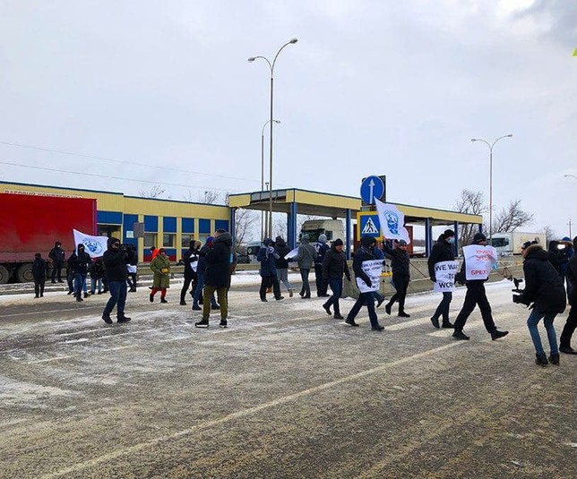 Мітингувальники зібралися біля КП «Дачне». Вони вимагають відставки міністра інфраструктури і начальника морської адміністрації.