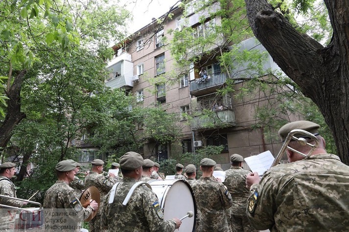 На День морської піхоти в Одесі під вікнами ветерана грав військовий оркестр (фото)