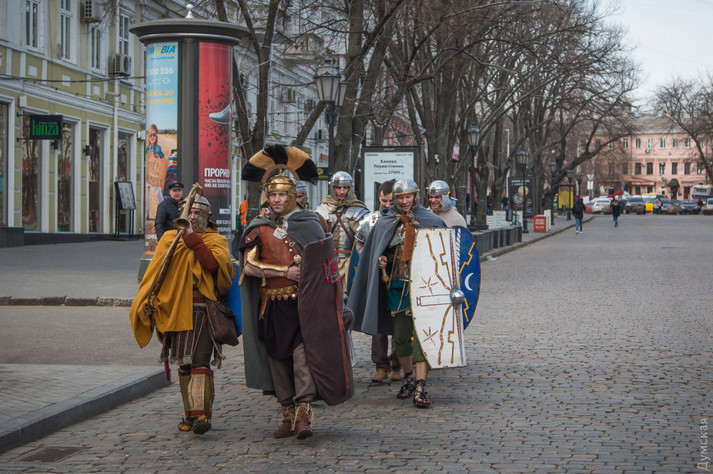 На Дерибасівській розбили табір римські легіонери. Фоторепортаж з Одеси