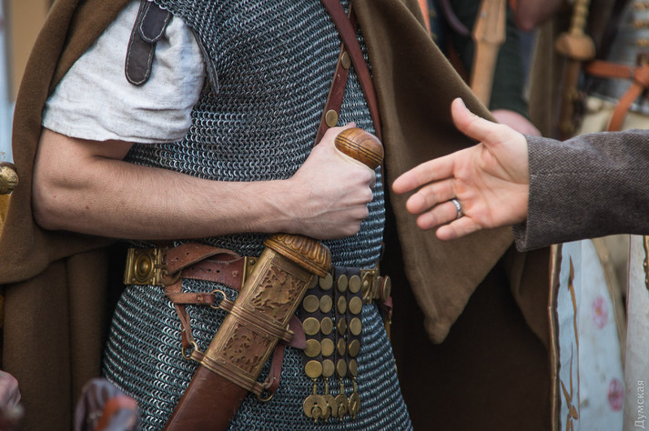 «Ми постаралися відтворити костюми з максимальною історичною точністю, - розповів журналістам один з організаторів табору, віце-президент фонду «Добрий Самарянин» Денис Средніченко. - У центуріона, наприклад, навершя повторює прикраса, знайдене при розкопках на території України, в Криму».