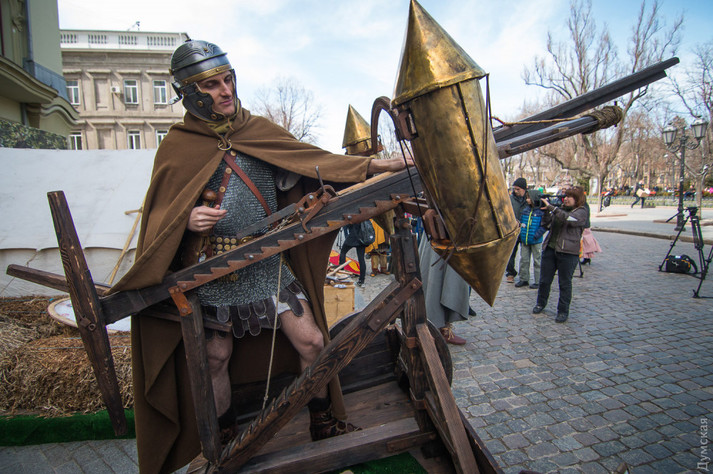 Легіонери зайняті рутинними справами, якими займалися їхні попередники два тисячоліття тому - лагодять амуніцію, точать короткі мечі-гладіуси, підшивають розірвалися в боргом поході калігі (чоботи) і перевіряють механізми баллісти. Реконструктори охоче фотографуються з прогулюються одеситами і відповідають на їх настирливі питання про вагу обладунків і їх вартості.