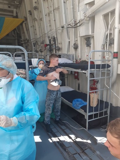 «У понеділок ввечері було виявлено хворого військовослужбовця, якого одразу доправили до Військово-медичного клінічного центру Південного регіону. На кораблі було розгорнуто ізолятор, до якого помістили групу контактних осіб. Цю групу обстежено військовими медиками та взято відповідні проби для проведення ПЛР тесту», - інформують медики.