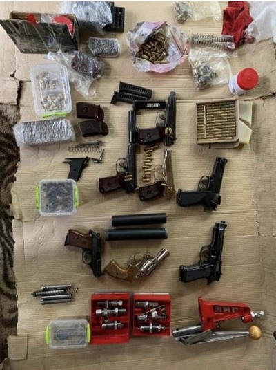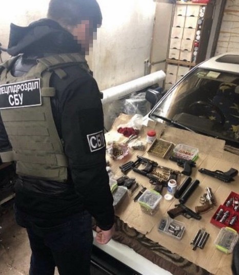 Під час проведення санкціонованих слідчих дій правоохоронці вилучили за місцем проживання фігуранта справи шість пістолетів Макарова, Вальтер, Беретта та револьвер РОНМ, 50 набоїв калібру дев’ять міліметрів, три пристрої для безшумової стрільби та складові частини до вогнепальної зброї.