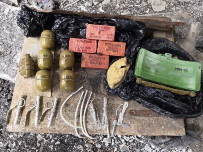 Зі схрону, облаштованому у покинутій будівлі, правоохоронці вилучили міну МОН-50, майже один кілограм тротилу, шість гранат РГД-5 та Ф-1, понад двісті п’ятдесят грамів пластиду, три запали до ручних гранат УЗРГМ та електродетонатори.