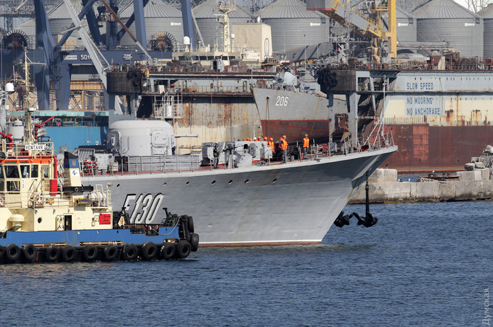 Цікаво, що вперше ми побачили на борту фрегата новий тактичний номер, який відповідає стандартам НАТО. Відтепер, замість колишнього U130, красується натовську F130. «Гюрза» також поміняли індекс - замість букви U на них з'явилися P174 і P175.