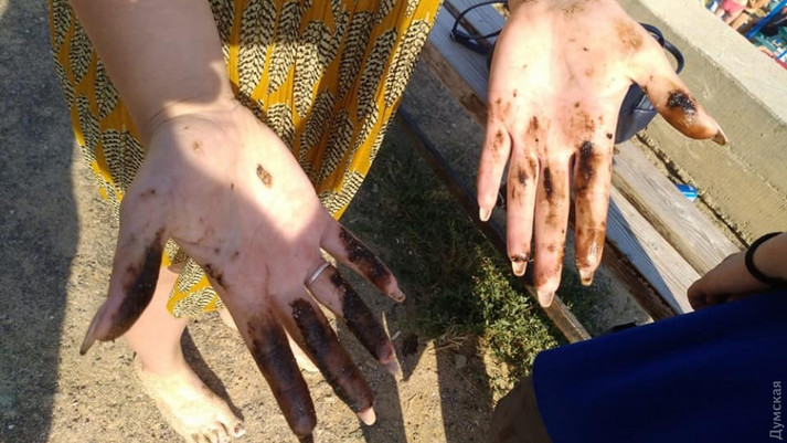 За словами відпочиваючих, масляниста рідина має запах мазуту і так просто не змивається з тіла і одягу.