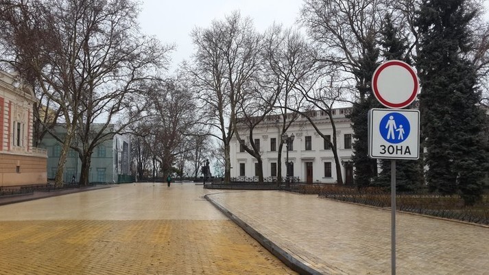 16 березня на перетині Пушкінської і Ланжеронівської комунальники встановили знаки «Рух заборонено» та «Пішохідна зона».