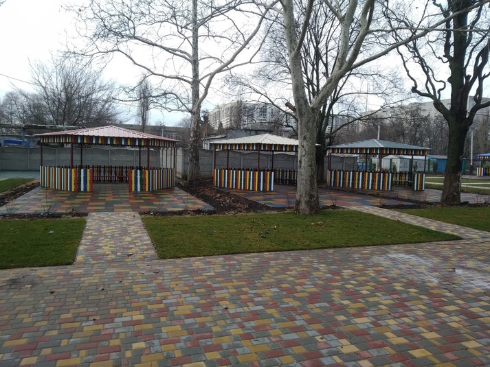 У процесі капітального ремонту було проведено і благоустрій території дитячого садка - встановлені нові дерев'яні тіньові навіси, облаштовано зовнішнє освітлення.