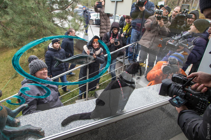 Нову скульптуру одеському коту відкрили на пляжі Ланжерон. Арт-об'єкт встановлений на ганку центру дельфінотерапії «Немо».