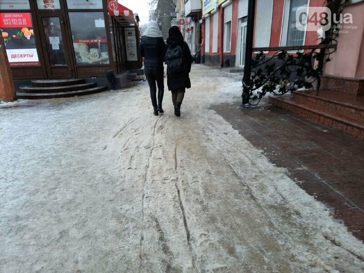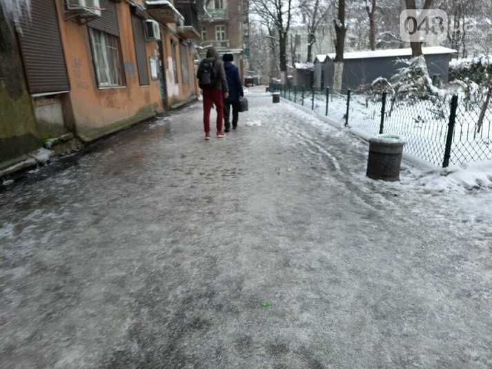Вулиці міста перетворилися на суцільну ковзанку. Громадський транспорт ходить з перебоями, а з дахів падають бурульки, пише 048.ua.