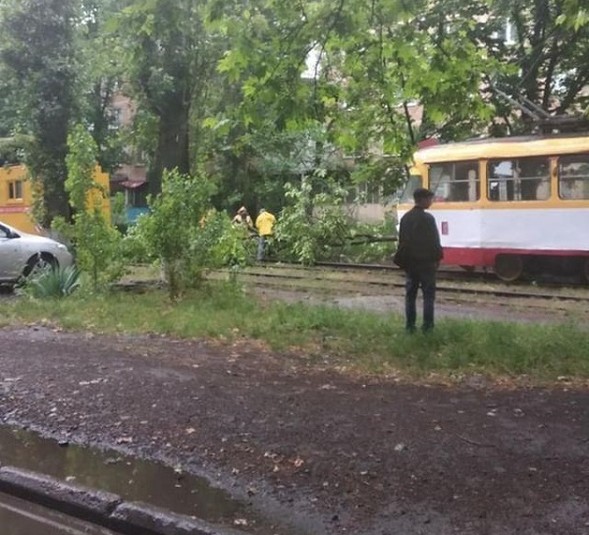 Негода в Одесі: повалені дерева заважають автомобілям і трамваям