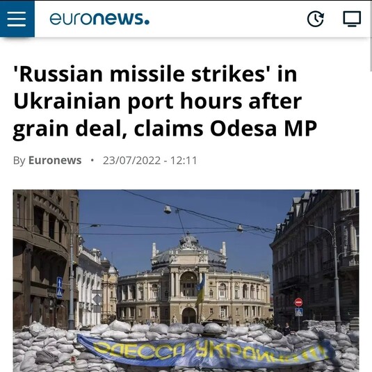 Посол Британії в Україні Мелінда Сіммонс теж наголосила на тому, що не минуло й 24 годин, а Росія вже порушила підписану нею ж угоду. А в Євросоюзі рішуче засудили ракетний обстріл порту.