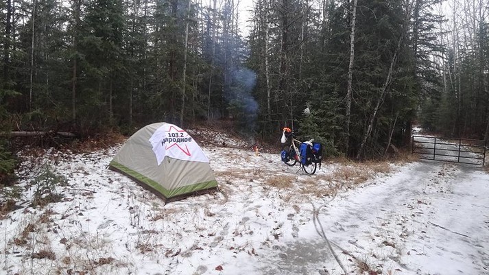 Мандрівник вже перетнув Аляску і майже добрався до кордону Канади і США. Йому доводиться долати по 60-70 км в день при мінусовій температурі, а ночувати - в наметі або у місцевих жителів.