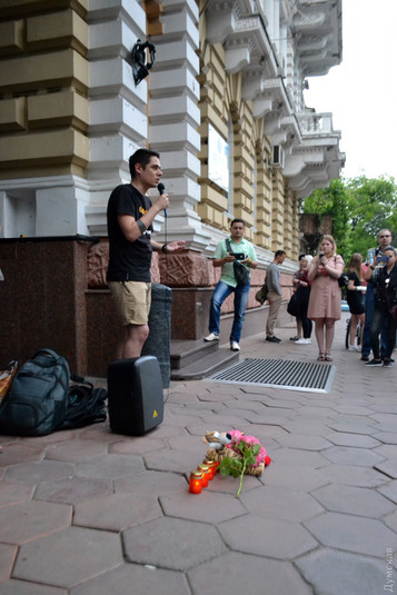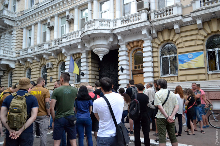 Кілька десятків громадських активістів прийшли сьогодні під будівлю Головного управління національної поліції в Одеській області. Вони вимагали відставки міністра внутрішніх справ Арсена Авакова після трагічної події в місті Переяслав-Хмельницький, де п'яні поліцейські під час стрілянини по банкам смертельно поранили 5-річну дитину.