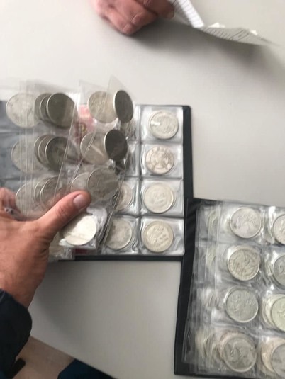 Два нумізматичні альбоми з монетами знаходилися у салоні автомобіля. Їх приховали серед особистих речей громадянина, який не мав жодних документів на право їх переміщення.